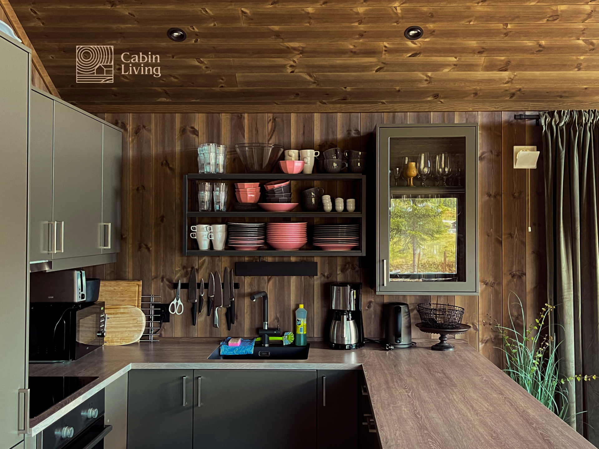 - Åpen kjøkkenløsning med alt utstyr: mikrobølgeovn, kaffetrakter, vannkoker, brødrister, vaffeljern, mikser, kjeler, stekepanner, kniver og glass til alle anledninger