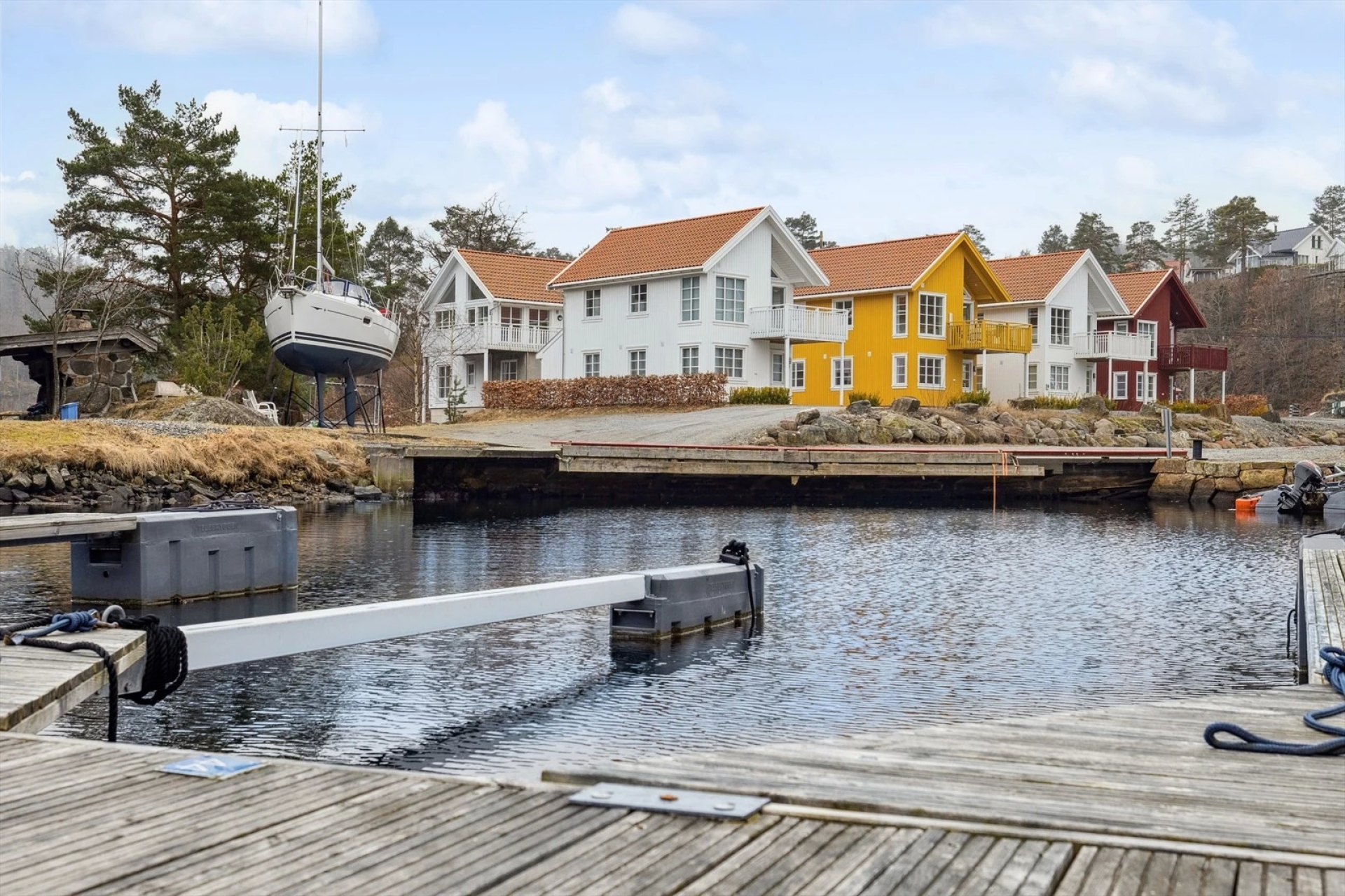 Her bor du bokstavelig talt et steinkast fra sjøen, med egen båtplass, solrike uteområder og kort vei til både Tvedestrand sentrum og Sørlandets vakreste skjærgård.